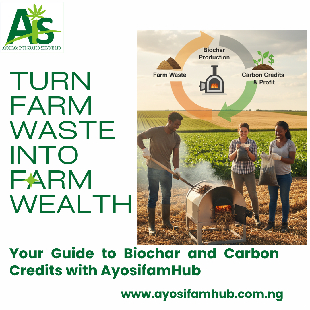 Did you know that the waste on your farm could be a source of significant new income? At AyosifamHub, we’re making it easy and profitable for farmers like you to step into the world of carbon credits by using a simple, powerful tool: biochar.