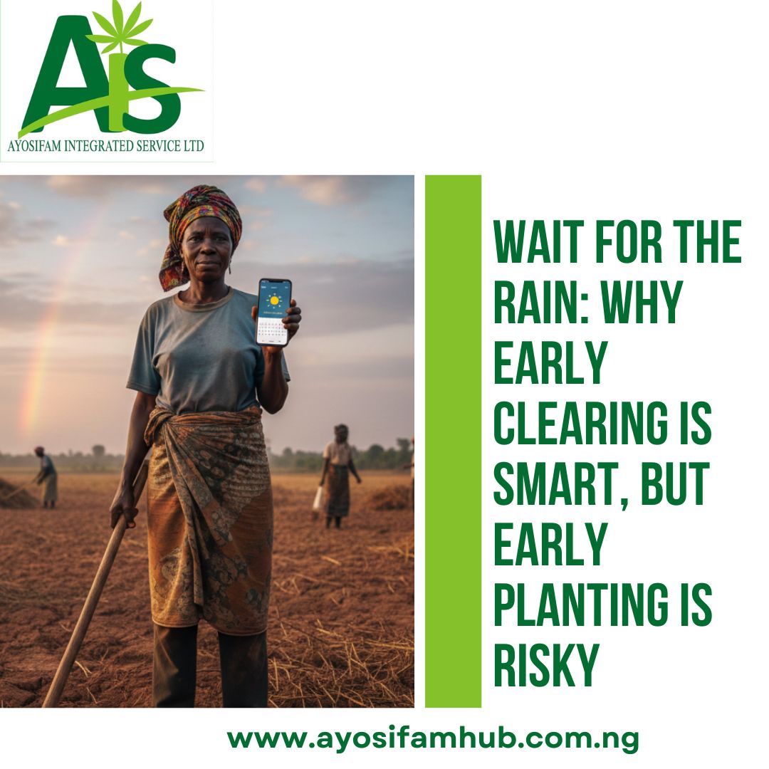 The Danger: If you plant now and the rain stops for two weeks (a “dry spell”), your seeds will germinate, find no water, and wither. You lose your investment in seeds, fertilizer, and labour, forcing you to buy everything all over again when the real rains come.